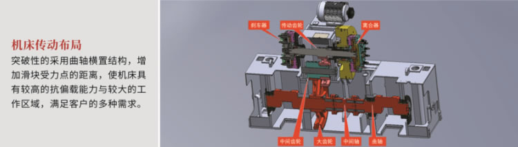 · 突破性的采用曲軸橫置結(jié)構(gòu),增加滑塊受力點(diǎn)的距離,使機(jī)床有較高的抗偏載能力與較大的工作區(qū)域;